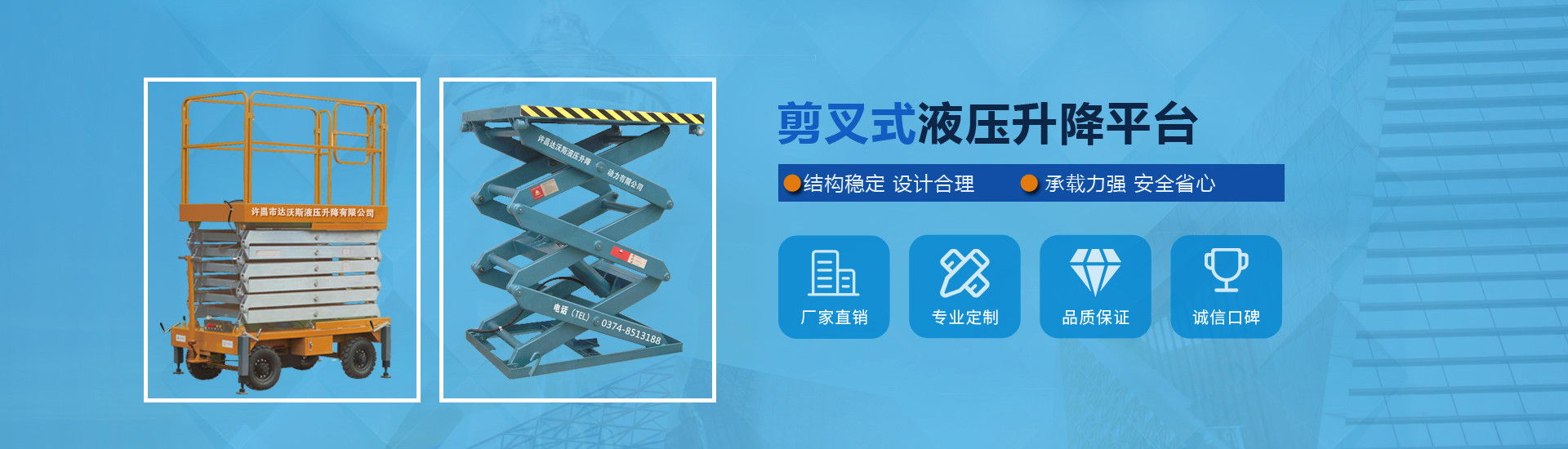 許昌市達(dá)沃斯液壓升降動(dòng)力有限公司擁有標(biāo)準(zhǔn)的現(xiàn)代化廠房,公司主要從事液壓升降機(jī)械和貨物舉升方案。主要生產(chǎn)產(chǎn)品為:SJY剪叉式高空作業(yè)平臺(tái),SJG固定式液壓升降臺(tái)、固定式液壓升降貨梯、DCQ固定式液壓登車橋、DCQY移動(dòng)式液壓登車橋、GTZ/GKT曲臂式高空作業(yè)平臺(tái)、GTC套港式高空作業(yè)平臺(tái)、詭柱式高空作業(yè)平臺(tái),以及各種非標(biāo)產(chǎn)品的定制...